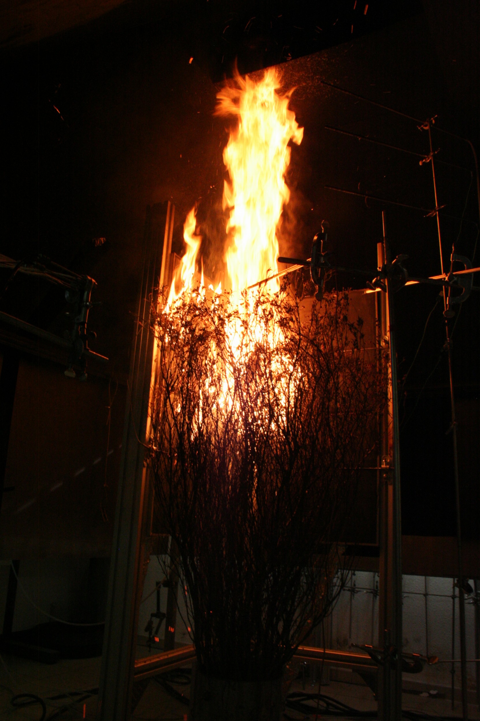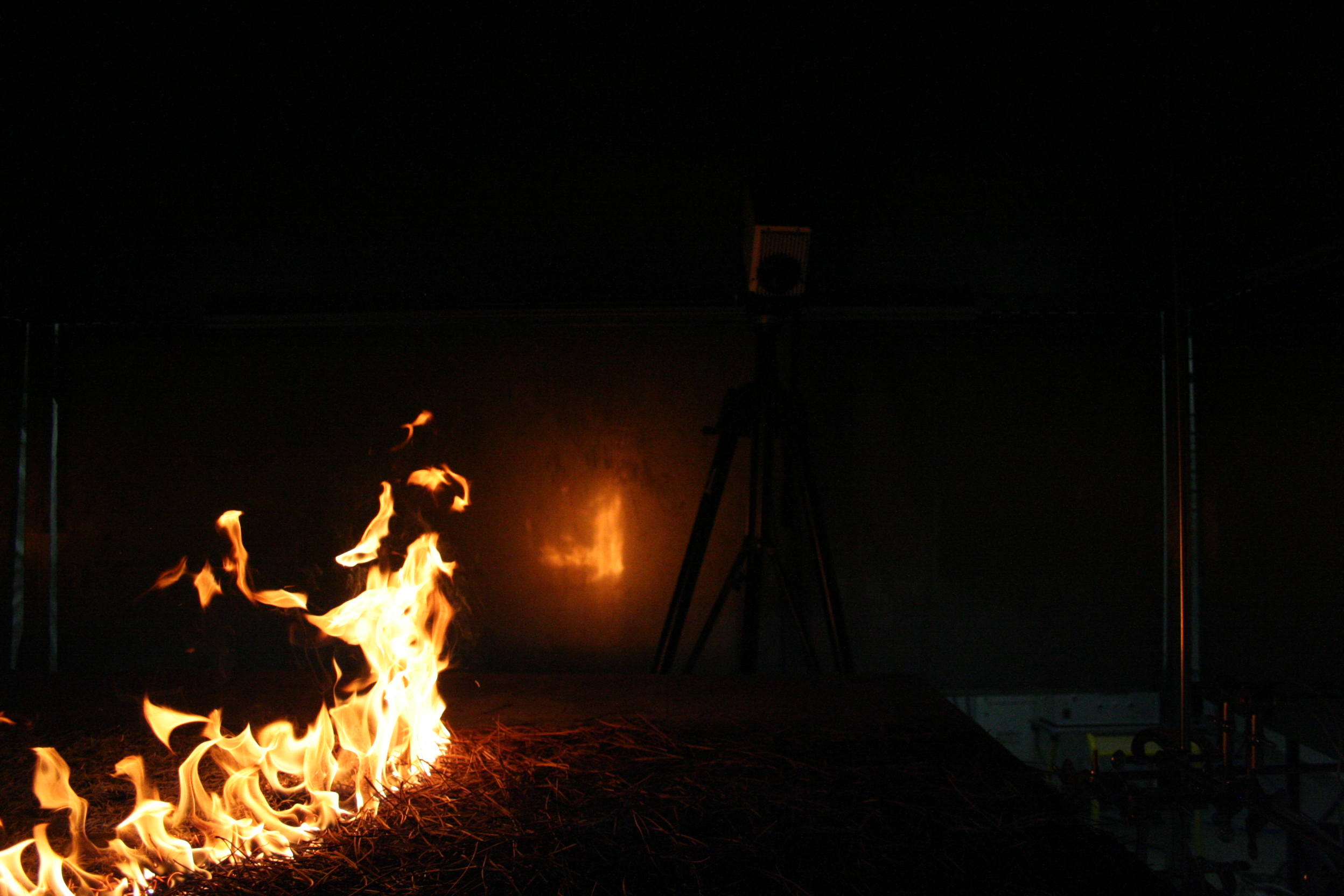 La puissance des feux, pour des charges de combustibles < 4 kg, est mesurée grace à un calorimètre grande échelle (Large Scale Heat Release Apparatus). Un banc de combustion inclinable permet d'étudier les effets de pente sur le comportement du feu. Celui-ci repose sur une cellule de pesée qui enregistre la perte de masse de l'échantillon au cours du temps. La température de la littière préchauffée par le front de flamme est également mesurée par thermographie infrarouge.