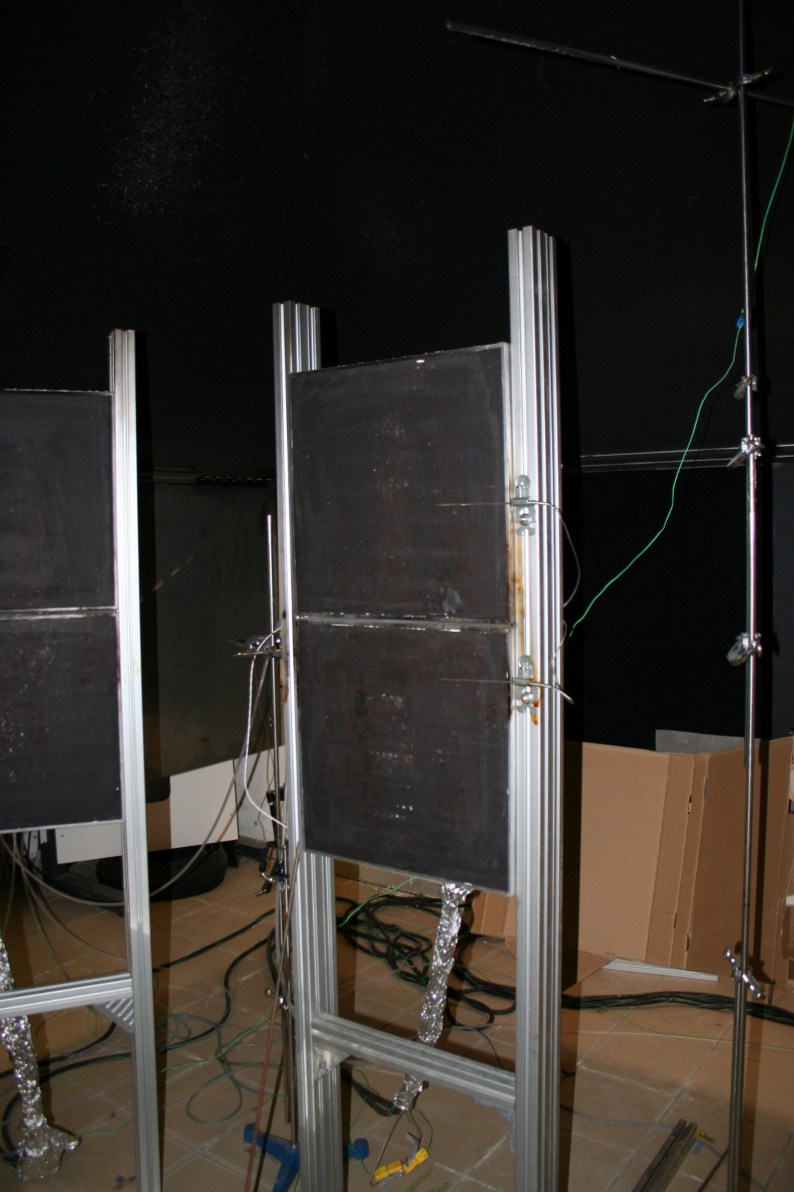 Les flux de chaleur émis par l'échantillon en combustion sont mesurés par des fluxmètres. Les temperatures de panneaux radiants et du végétal sont également suivies avec des thermocouples et une caméra infrarouge.