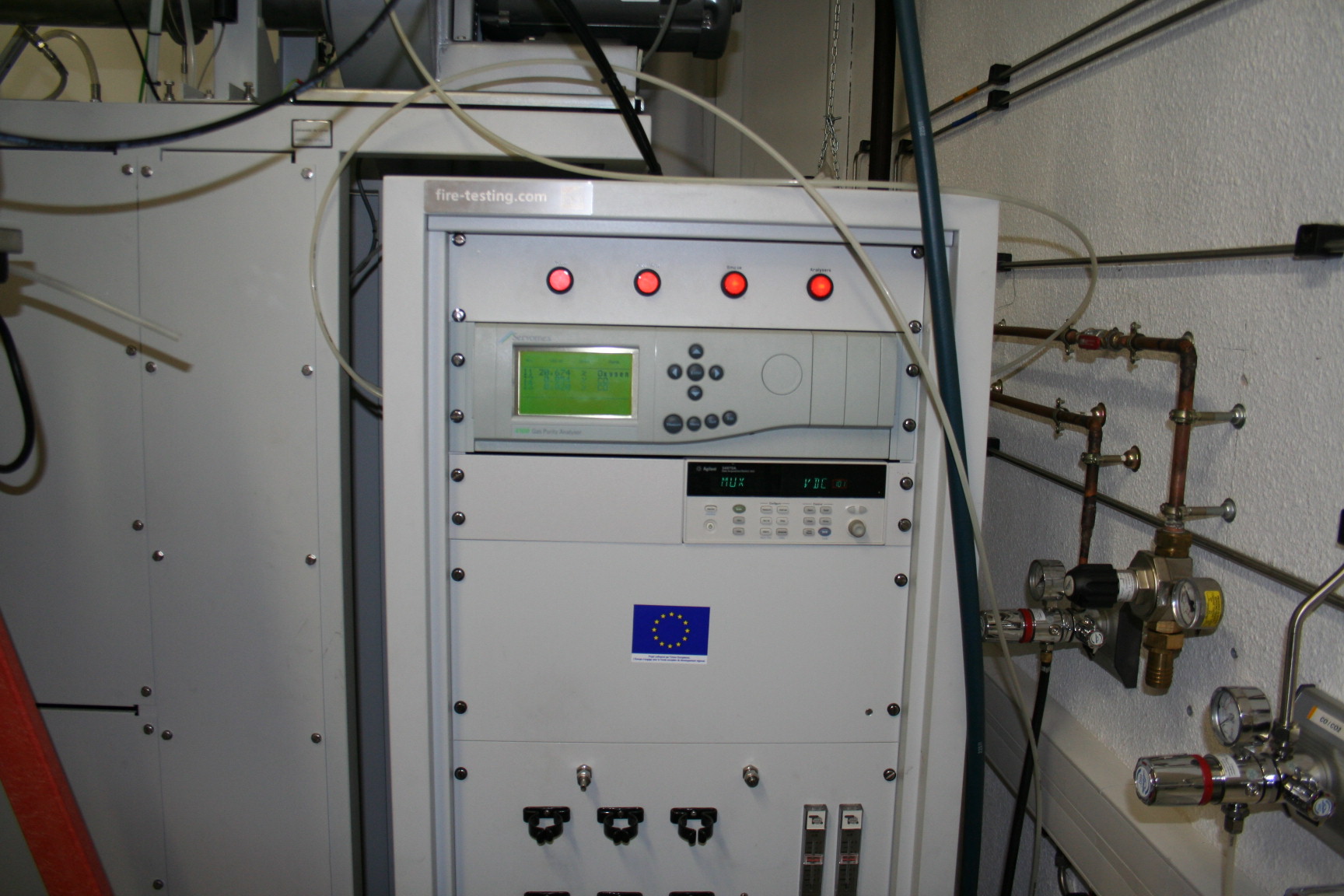La mesure de la puissance de petits échantillons (jusqu'à 10g) est réalisée à l'aide d'un cone calorimètre. Un analyseur de gaz permet de quantifier les gaz O2, CO et CO2 au cours de la combustion. La masse de l'échantillon est également enregistrée tout au long du processus de dégradation thermique grace à une balance de précision.
