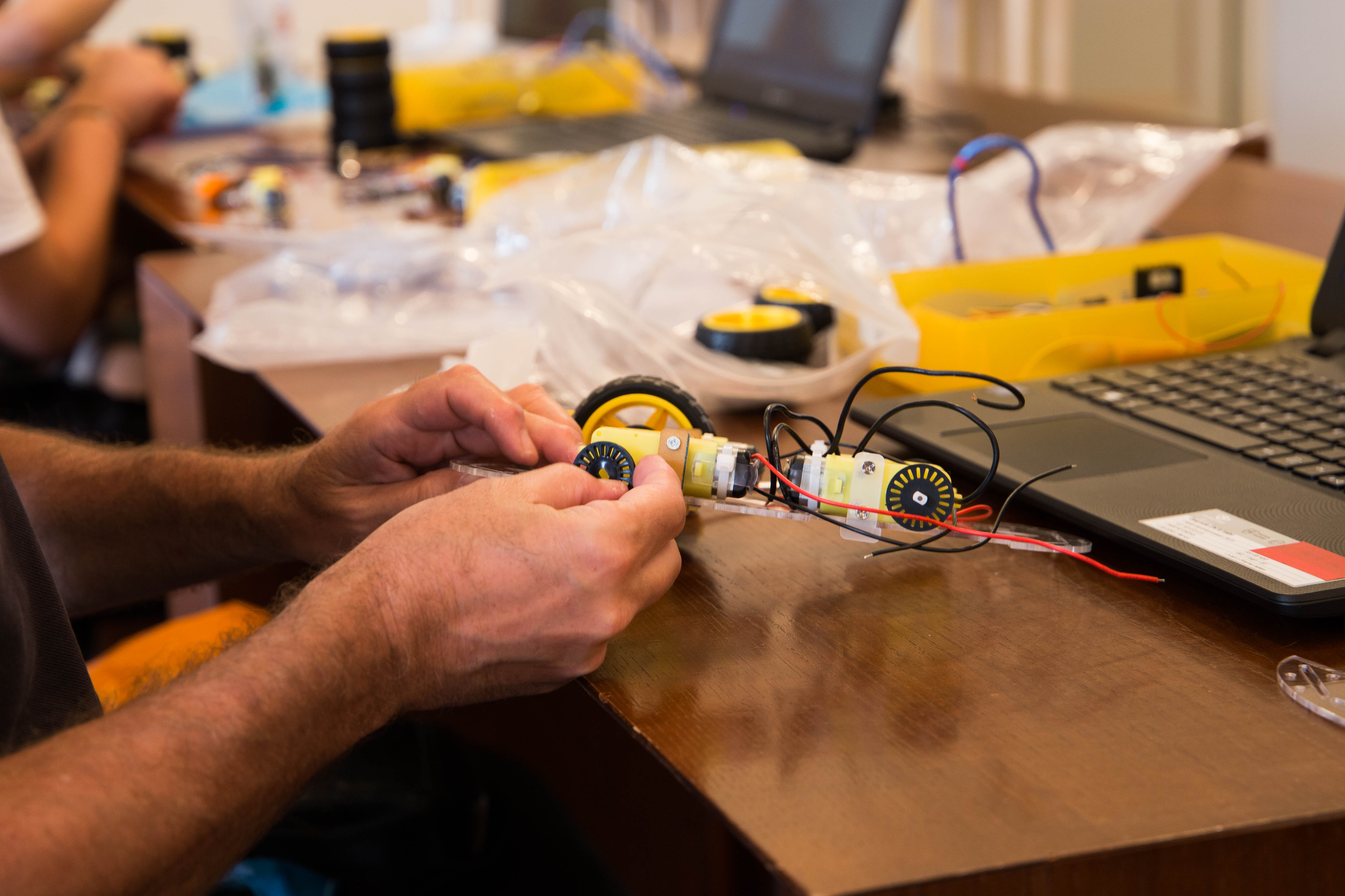 Les participants ont emmené avec eux les robots d’une session précédente (R1), ils ont d’abord commencé une série de tests pour savoir si leurs robots étaient fonctionnels afin d'entamer une mise à niveau vers le robot R2.