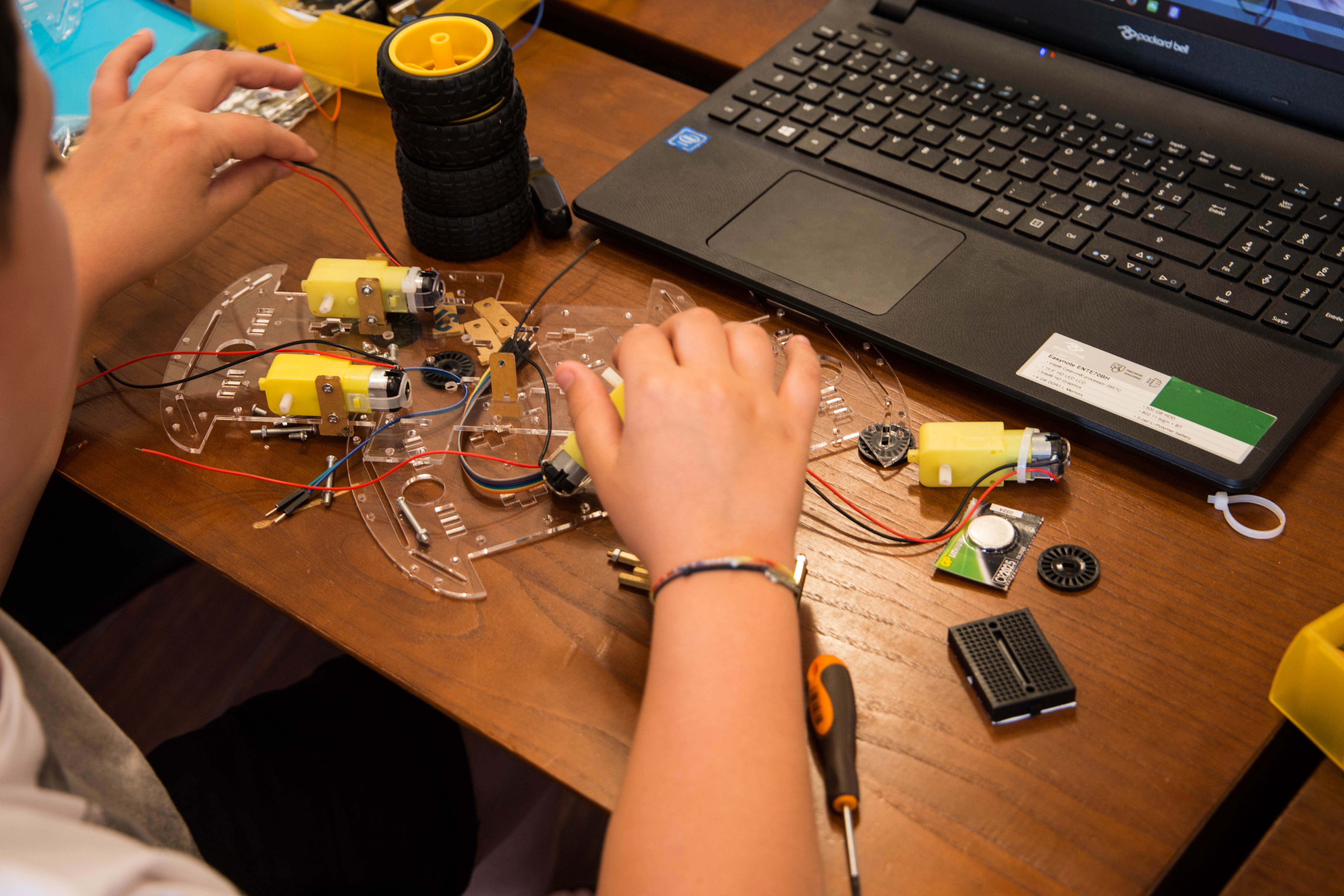 Les participants commencent par monter leur robot à l’aide d’une vidéo explicative, chacun à son rythme.